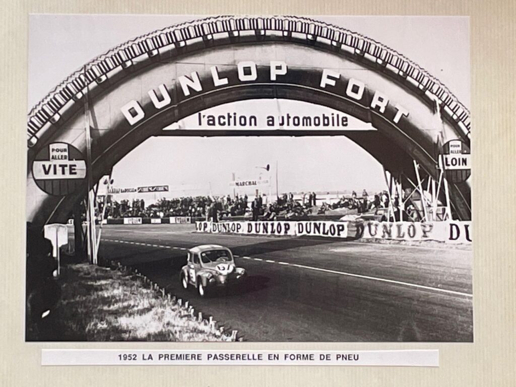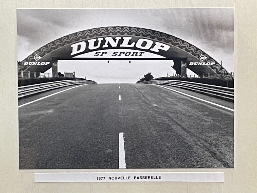 Insubmersible au temps qui passe et aux aléas stratégiques des grandes organisations, la passerelle aurait pourtant pu passer à trépas dès le début des années 1980. Figure majeure du pneumatique tricolore, nommé à la tête de Dunlop France début 1984 lorsque la marque britannique mit la clé sous la porte et fut sauvée par Sumitomo, Claude Cham a contribué à la sauvegarde de ce patrimoine. Alors que la firme créée par John Boyd Dunlop avait quelques dettes à régler envers l'ACO (Automobile Club de l'Ouest), le dirigeant décida de tout solder et de garder ce précieux support de communication.
