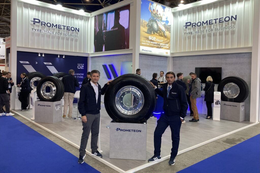 Lyon, comme un carrefour européen du monde du transport et des ambitions d'un de ses acteurs. Organisé dans la capitale des Gaules du 18 au 22 novembre 2025, Solutrans a accueilli dans ses allées un nouvel arrivant. Issue de la scission de la division industrielle de Pirelli, Prometeon Tyre Group, spécialisé sur les enveloppes poids lourds, agricoles et hors route, a en effet choisi de participer au grand rendez-vous du secteur industriel. Ses couleurs étaient ainsi visibles au sein du hall 3, aux côtés des autres représentants du monde de la gomme.