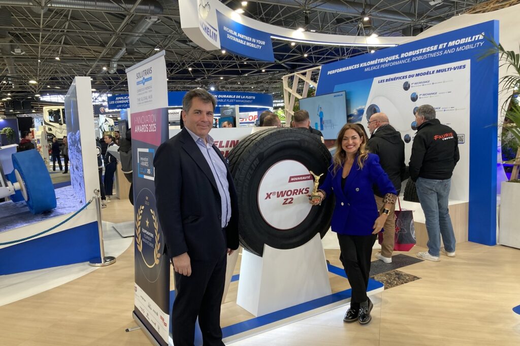 Dans la catégorie équipementiers, le groupe Michelin s'est distingué en étant élu "lauréat or" grâce à sa gamme d'approche chantier X Works Z2. Les représentants de Bibendum, présents à Eurexpo pour le grand rassemblement du monde du transport, se sont vu remettre ce trophée lors de la cérémonie organisée à l'hippodrome de Lyon-Parilly. "C'est une très belle récompense !" s'enthousiasme Alexandre Gasc, directeur marketing France et Benelux.