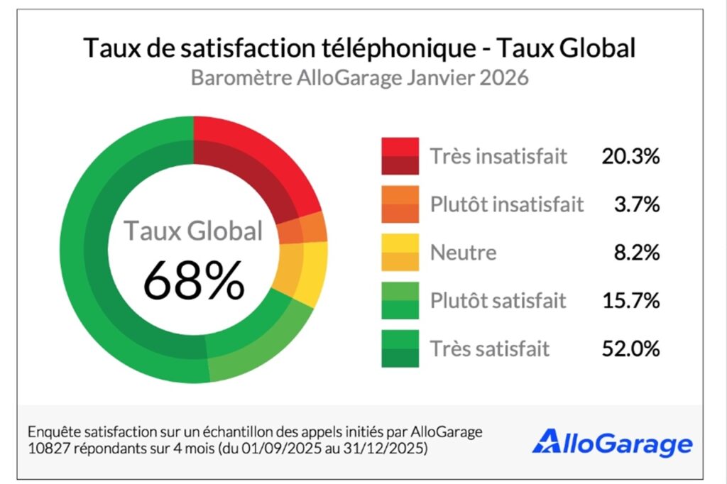 AlloGarage vient de publier son baromètre de la satisfaction téléphonique pour janvier 2026. Réalisée sur plus de 10 800 appels analysés sur quatre mois, l’étude montre une hausse de deux points par rapport à l’automne 2025. Si la tendance est positive, le niveau reste toutefois inférieur à celui observé au printemps dernier.